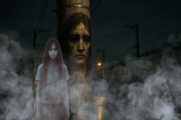 しかし、夜になると表面に、こちらを見つめる「女の顔」が浮かび上がる…。そんな噂が広まり、この電柱はいつしか「人面電柱」と呼ばれる心霊スポットになりました。