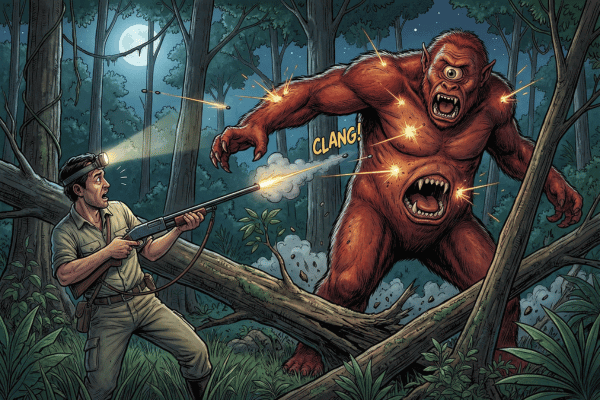 多くのUMAが人目を避けるようにひっそりと存在するのに対し、マピングアリは遭遇した人間に襲いかかり、最新のライフル銃ですら通用しないという報告もあります。
