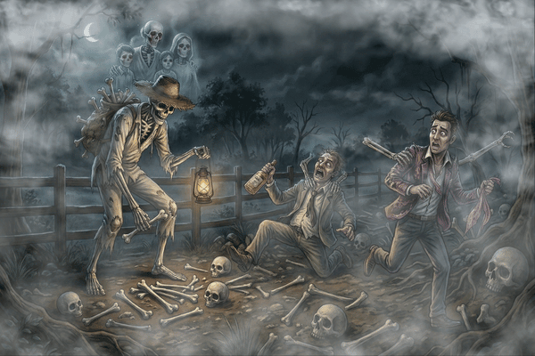 口笛を吹きながら永遠に彷徨い、家々を訪れては骨を数える怪物…。